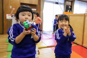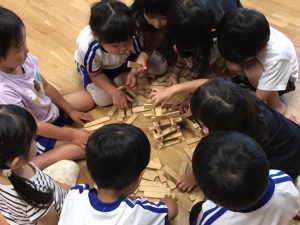 子どもの発達はそれぞれで、全ての子どもに同じ事をする、子どもに「やってあげる」「やらせる」一斉集団画一の教育ではなく、子どもにより多くの選択肢を用意し、幅を持った時間の中で子どもが考えられるよう待つ事で、子どもが自発的、意欲的に関われる環境を設定し、子どもの主体的な活動を大切にした教育をしています。子どもは主体的に関わる活動の中で、より集中してその活動を行い、自ら深めていく事ができます。