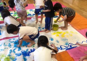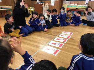 また園内では、健康、感覚の刺激、リラックス効果等から裸足を推奨しています。園庭でも無理なく裸足になり、泥んこ遊びを行っております。他、ルールのあるスポーツを体験し、「決まりを守る」ことや「仲良く助け合う心」、「健康な心身」を築くため、専任の講師による剣道やスポーツ教室も取り入れています。そのほか多様な体験のために、英語・造形・ハッピータイム・読み聞かせもあります
