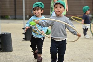 子どもに「やってあげる」「やらせる」一斉集団画一の保育ではなく、子どもにより多くの選択肢を用意し、幅を持った時間の中で子どもが考えられるよう待つ事で、子どもが自発的、意欲的に関われる環境を設定し、子どもの主体的な活動を大切にした教育をしています。