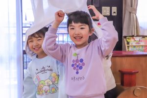 その中で職員は、それぞれの子どもの気持ちを理解し、発達段階を捉え、できるだけ子ども同士を繋げ、見守り、援助が必要な時は手を差し伸べていきます。子どもは主体的に関わる活動の中で、より集中してその活動を行う事ができ、子ども自らが深めていきます。 また、異年齢の子ども同士の関わりで、多様な人との関わりの経験を重ね、社会性や協調性を身につけていきます。